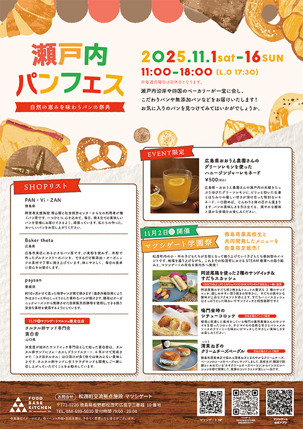 FOOD BASE KITCHEN (フードベースキッチン) では11/1(土)〜11/16(日)の日程で「瀬戸内パンフェス」を開催いたします。
