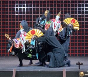 1つ目の演目は、地元松茂町で活動する「ふれあい座」による、天下泰平・五穀豊穣を祈願する「寿式三番叟(ことぶきしきさんばそう)」です。