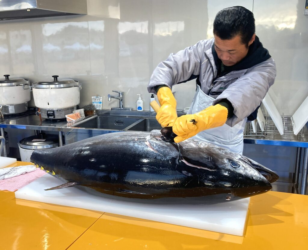 皆さんの目の前で、本マグロを解体します!大きな包丁ではなく、小出刃包丁1本で捌く熟練の技をぜひご覧ください!
