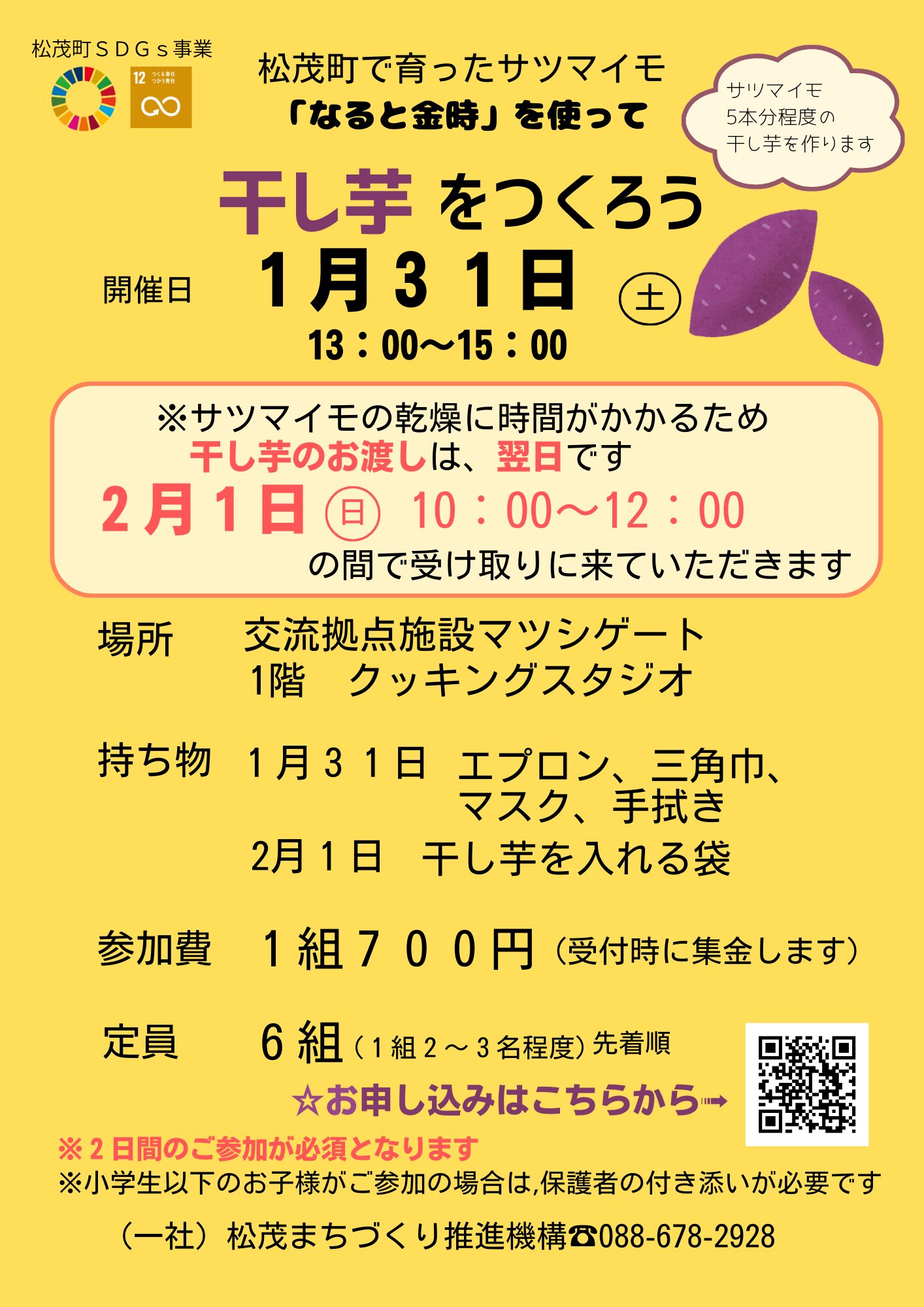 ※今回の料理教室は、干し芋の乾燥に時間がかかるため