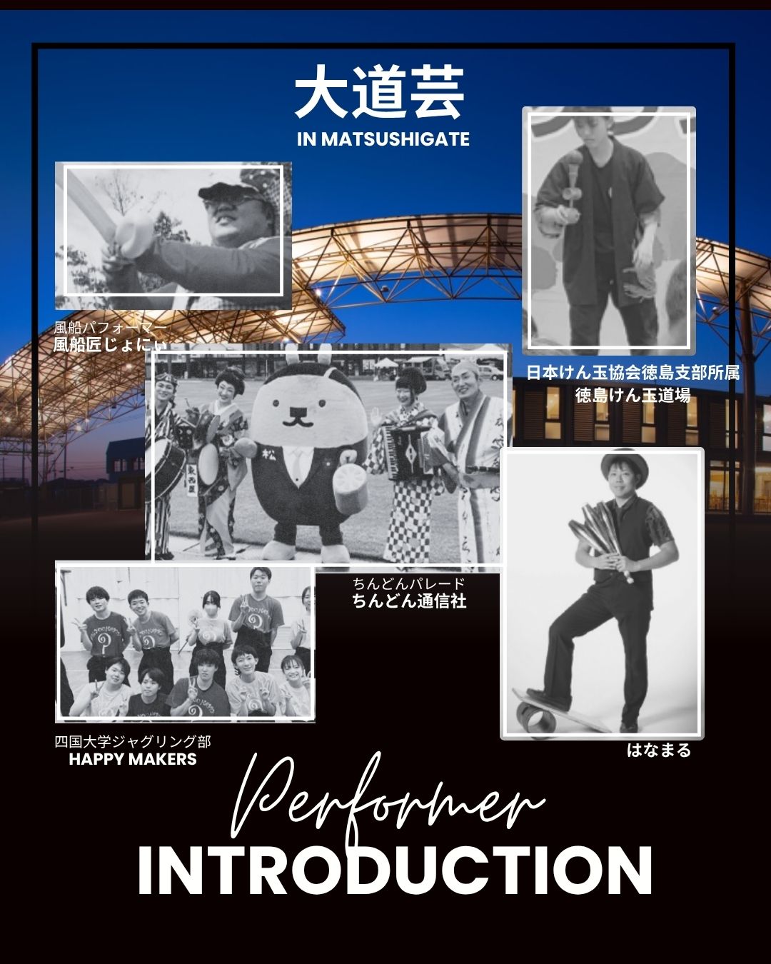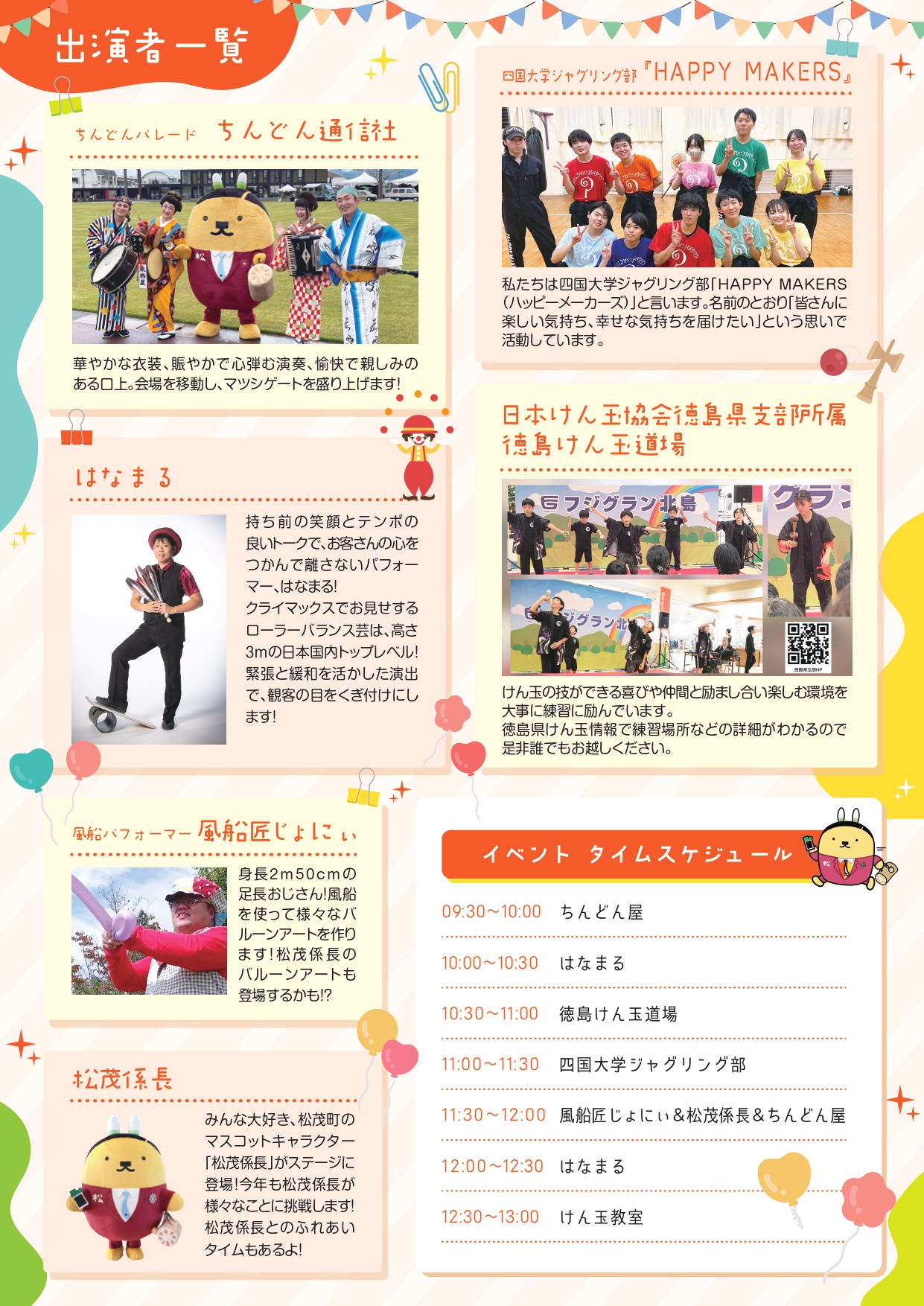 • 11:30~12:00 徳島けん玉道場(混成ステージ:風船匠じょにぃ&松茂係長&ちんどん屋)